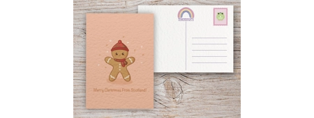 Scottish Postcard, Gingerbread man Christmas Postcard
